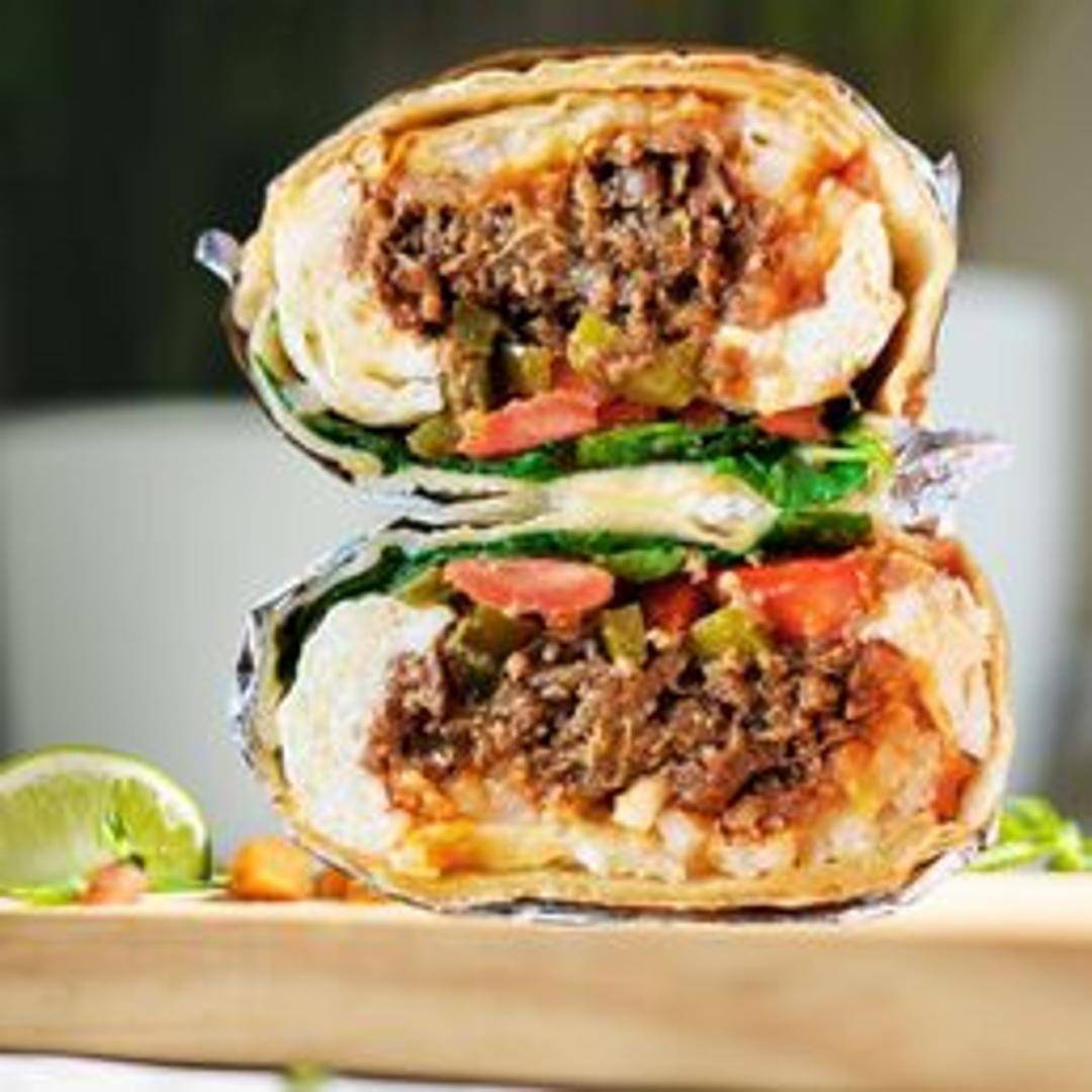 Korean marinated bulgogi (thinly sliced beef) combined with rice, kimchi, and a drizzle of gochujang mayo, all wrapped in a warm flour tortilla. A flavorful and slightly spicy fusion dish.