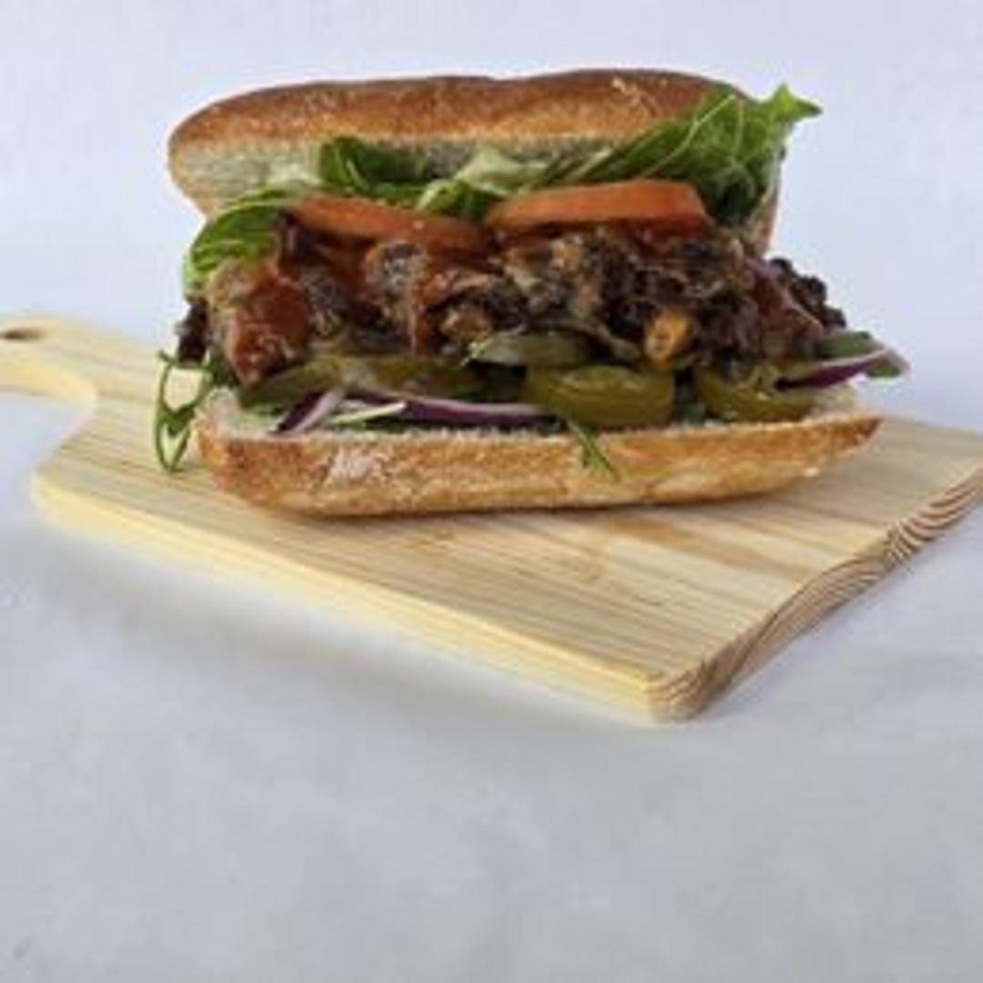 Thinly sliced marinated beef bulgogi, grilled and served on a toasted roll with kimchi slaw, sesame mayo, and a sprinkle of green onions.