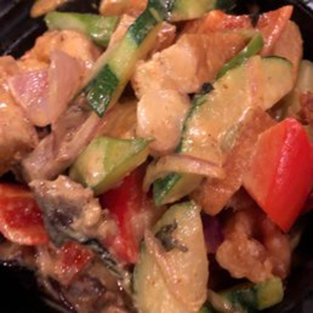 A vibrant and customizable stir-fry dish, prepared in a traditional wok with your choice of protein and a colorful medley of fresh vegetables, all tossed in a fiery and savory sauce that delivers a perfect balance of heat and flavor.