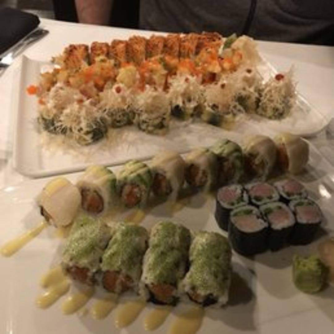 A distinctive and artfully crafted sushi roll, named with local flair. This specialty creation often combines premium fresh seafood or choice ingredients with complementary flavors and textures, beautifully rolled with seasoned sushi rice and nori, and finished with unique toppings or a signature sauce for a memorable taste experience.