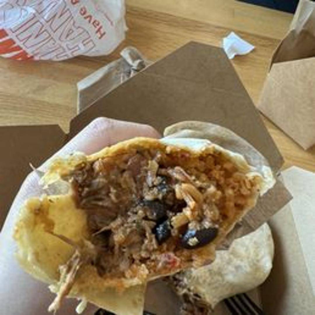 A hearty burrito filled with savory, smoky burnt ends, rice, beans, cheddar cheese, and your choice of salsa. Served with a side of sour cream and guacamole.