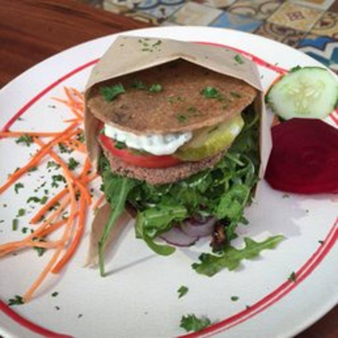 A hearty and flavorful burger featuring a grilled portobello mushroom cap as the patty, nestled between a vegan bun with fresh lettuce, tomato, onion, and our signature sauce. A satisfying and plant-based alternative to traditional burgers.