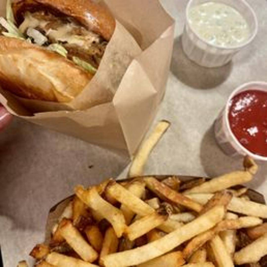 Our classic burger featuring a perfectly cooked beef patty topped with melted American cheese, crisp lettuce, sliced tomato, onions, pickles, ketchup and mustard, all served on a toasted bun.