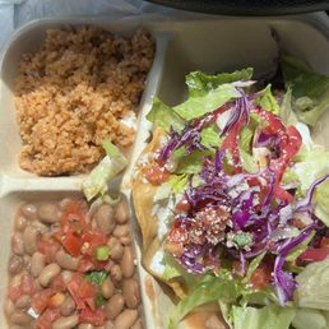 Crispy fried chicken tacos topped with shredded lettuce, pico de gallo, crema and cotija cheese. Served with a side of salsa.