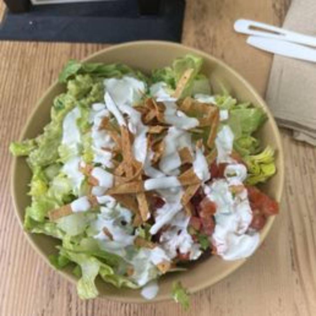 Crispy tortilla bowl filled with your choice of protein, black beans, rice, lettuce, pico de gallo, guacamole, and crema.