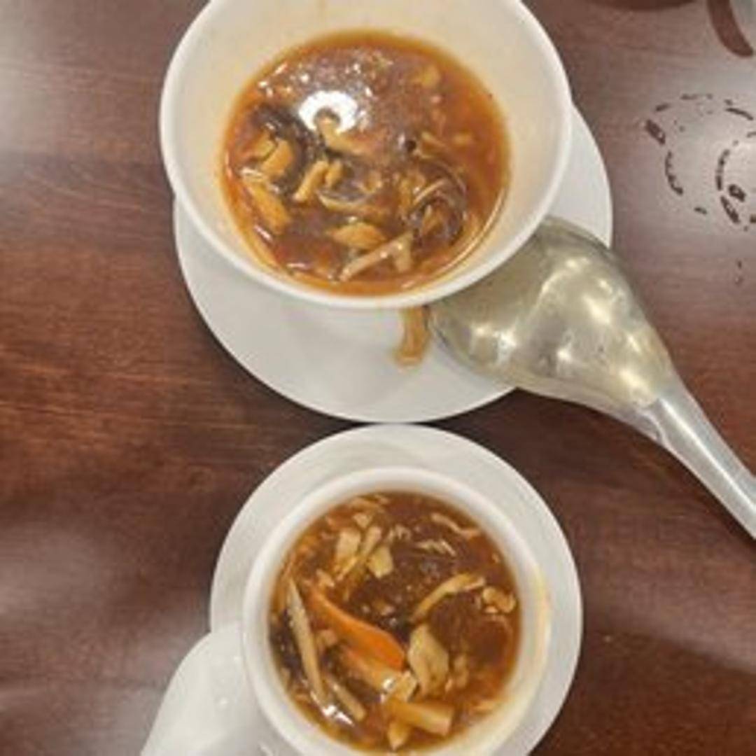A thick and flavorful soup with a balance of spicy and sour notes. Contains tofu, wood ear mushrooms, bamboo shoots, egg, and pork in a rich broth.