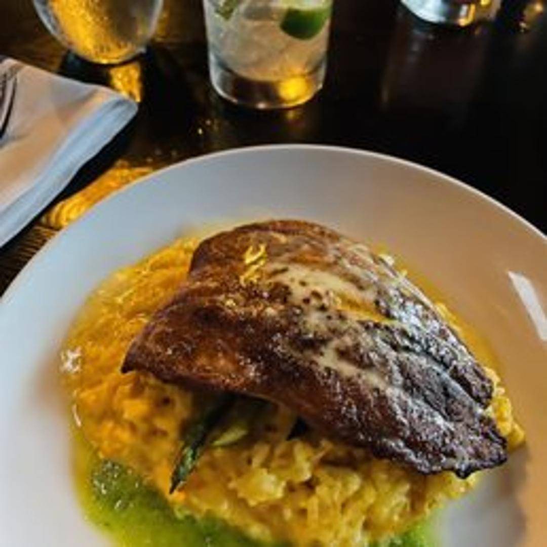 Savor the delicate perfection of our South American Sea Bass, expertly pan-seared to achieve a beautiful golden crust while preserving its incredibly flaky and tender interior. This exquisite fish is artfully prepared with vibrant notes of zesty lime, aromatic cilantro, and a subtle aji pepper essence, beautifully complemented by a selection of fresh, seasonal vegetables and a light, flavorful sauce.