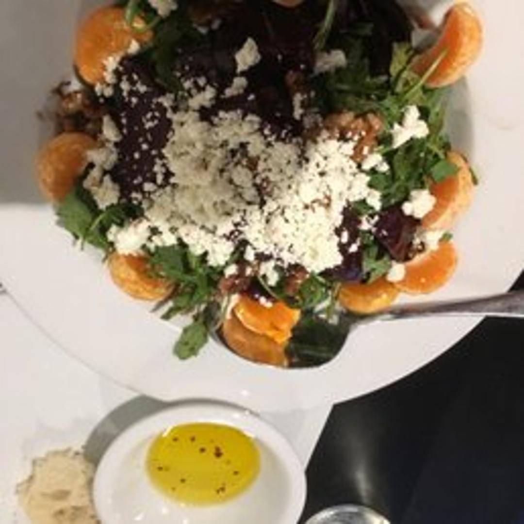 Roasted beets served over mixed greens with goat cheese, candied walnuts, and a balsamic vinaigrette.