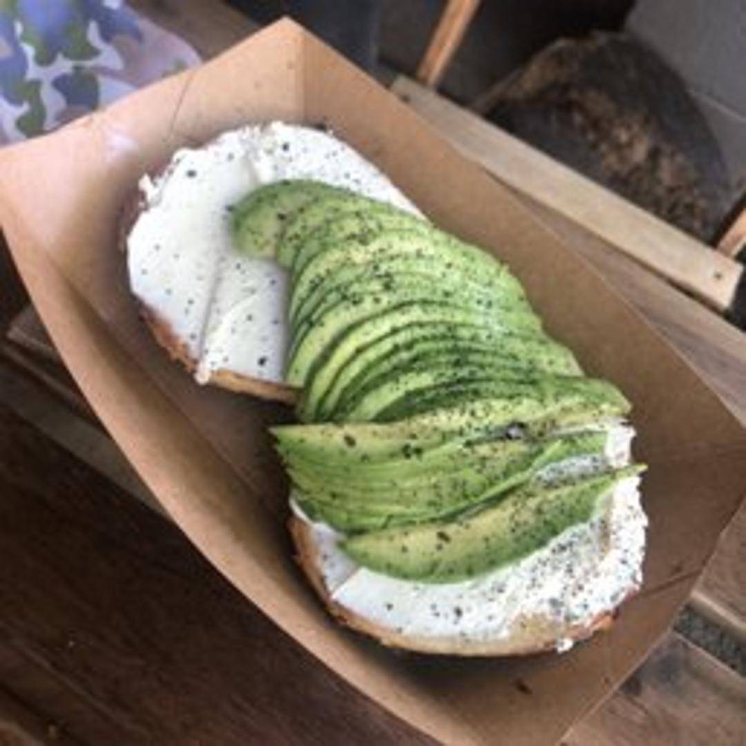 Toasted bagel topped with fresh avocado, everything bagel seasoning, and your choice of red pepper flakes or a drizzle of olive oil.