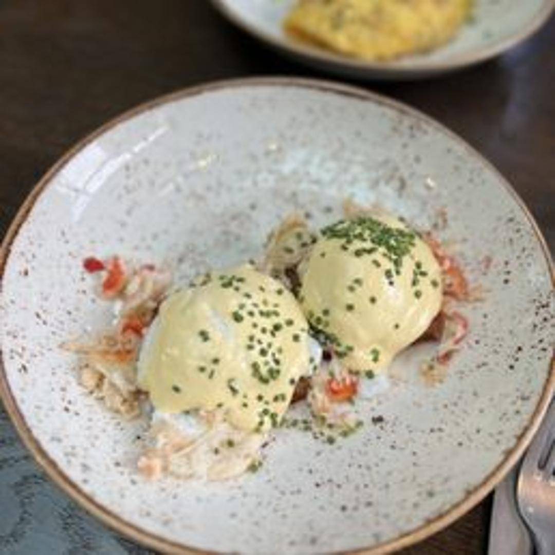Two poached eggs atop toasted English muffins, layered with generous portions of succulent Alaskan King Crab meat, and drizzled with hollandaise sauce. Served with a side of breakfast potatoes.