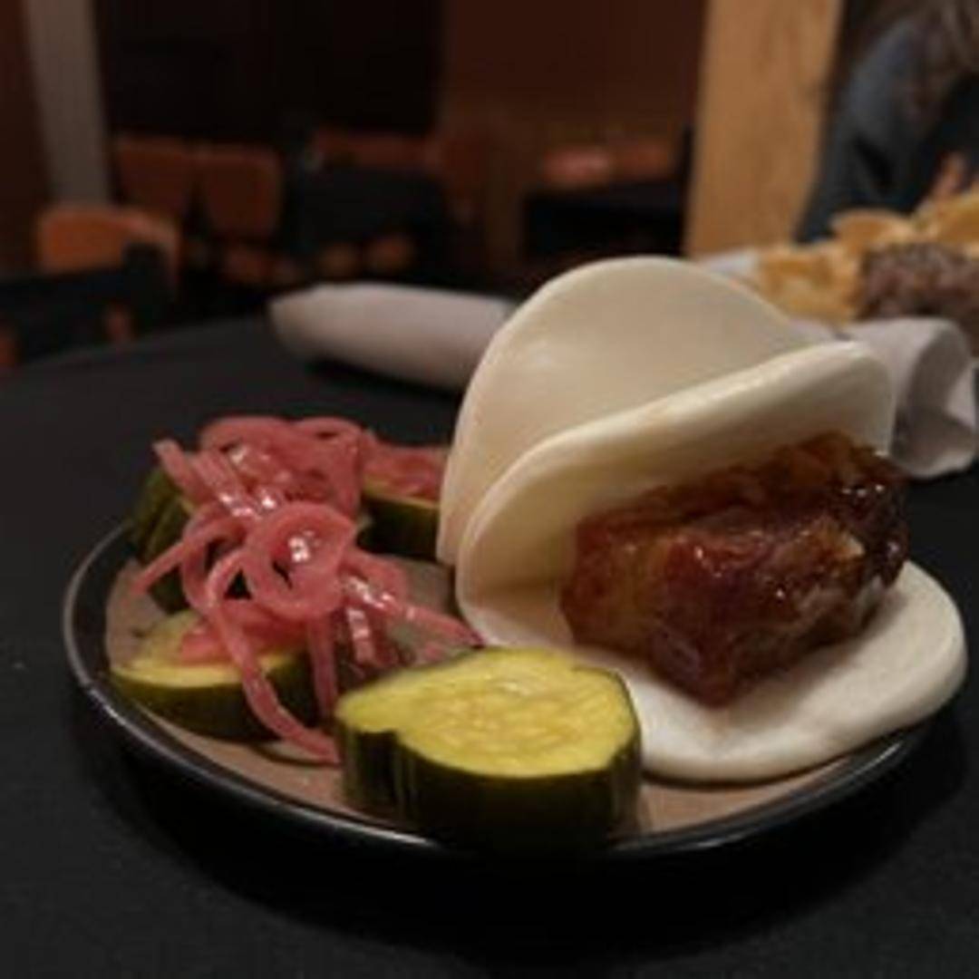 Steamed bao buns filled with [mention filling ingredients if known - e.g., braised pork, pickled daikon, cilantro]. Served with [mention dipping sauce or accompaniments if known]. Each order contains [mention quantity if known - e.g., two] buns.
