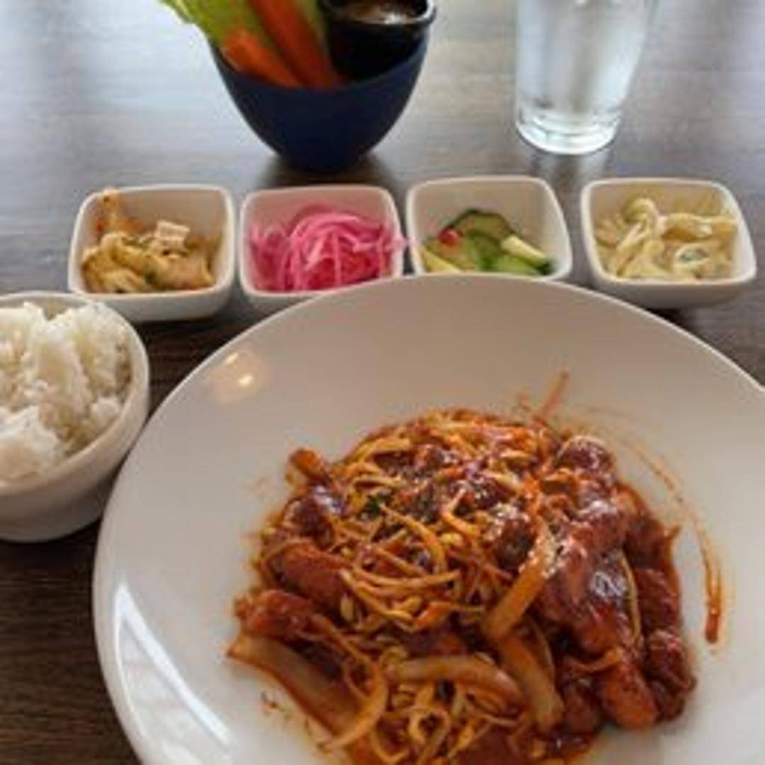 Thinly sliced pork belly marinated in a spicy Korean gochujang-based sauce and stir-fried with onions and other vegetables. A flavorful and fiery dish offering a perfect balance of heat and savory flavors.