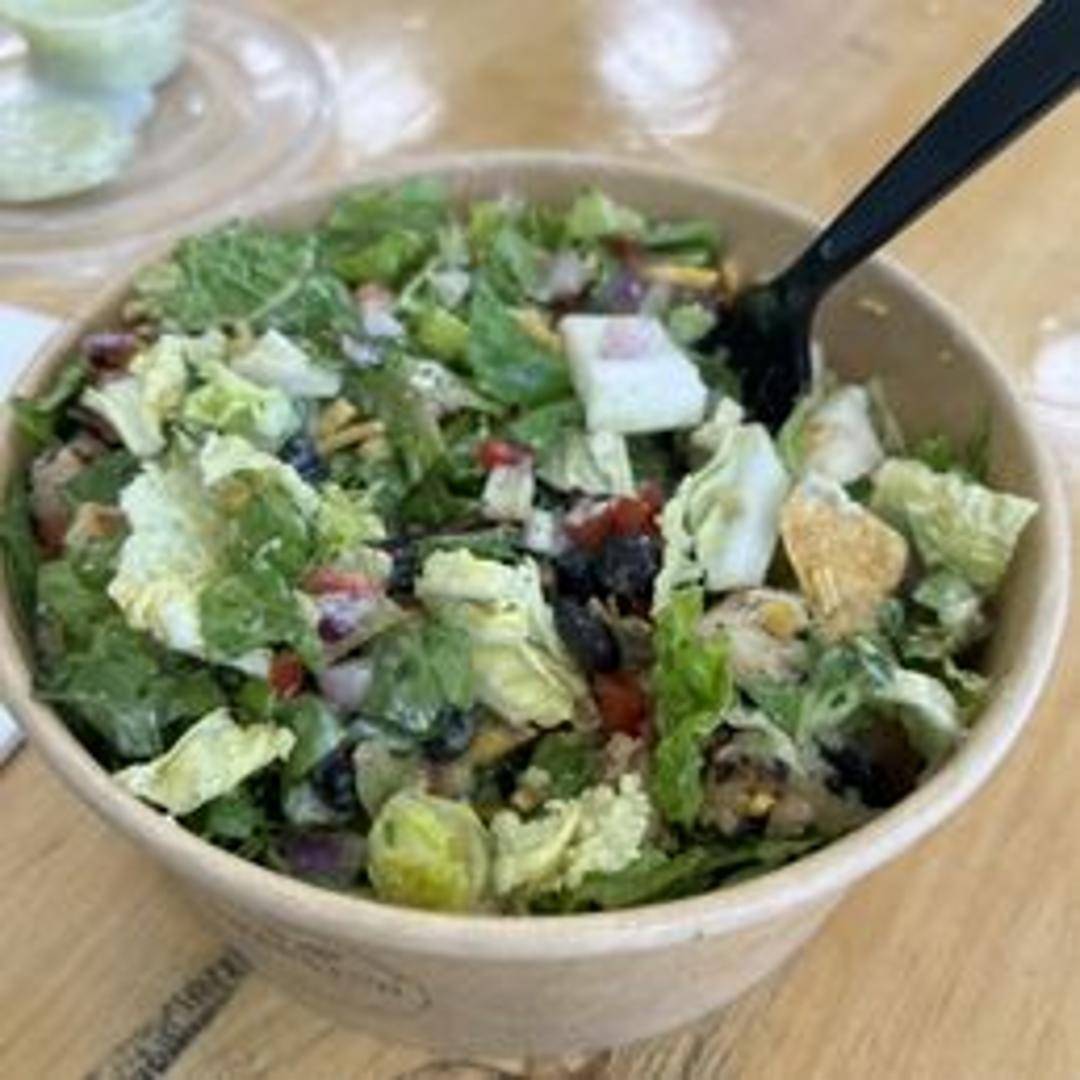 A refreshing mix of romaine lettuce, grilled chicken or black beans, roasted corn, black beans, diced tomatoes, avocado, and crispy tortilla strips, tossed in a zesty southwest dressing.