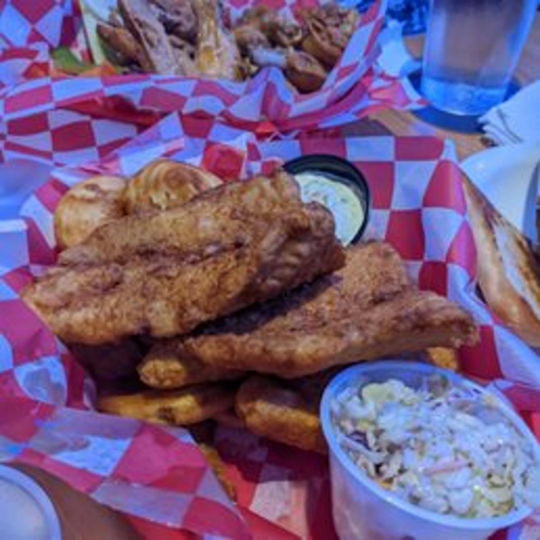 Golden-fried battered cod served with a generous portion of crispy french fries. Accompanied by tartar sauce and malt vinegar.