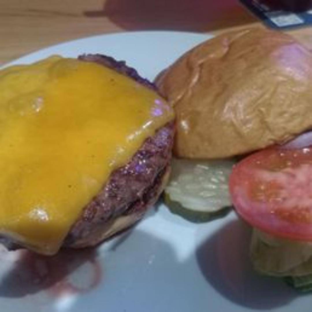 A juicy, grilled beef patty topped with crumbled blue cheese, crisp lettuce, ripe tomato, and red onion on a toasted brioche bun. Served with your choice of side.