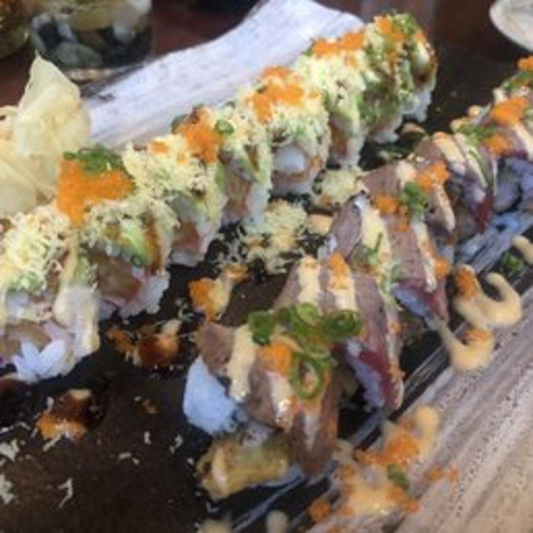An enchanting signature sushi roll that promises a unique culinary adventure, featuring an intriguing blend of premium, fresh ingredients, including a special combination of seafood and vibrant vegetables, enhanced by a secret sauce to deliver a truly magical and unforgettable flavor.