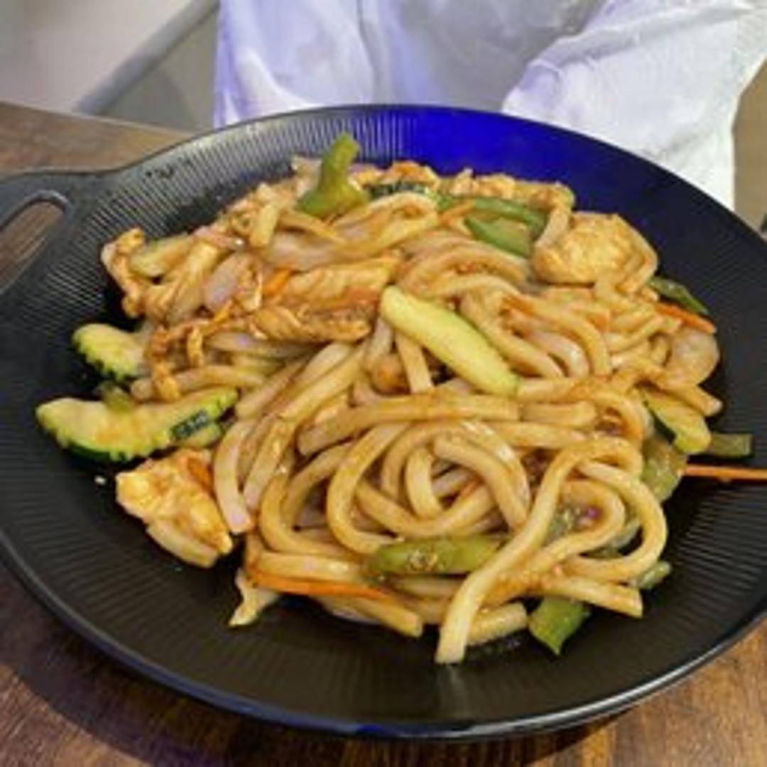 A house specialty featuring tender, springy noodles tossed in a rich, savory signature sauce. This authentic dish is prepared with a medley of fresh vegetables and your choice of protein, offering a harmonious blend of textures and deeply satisfying flavors.