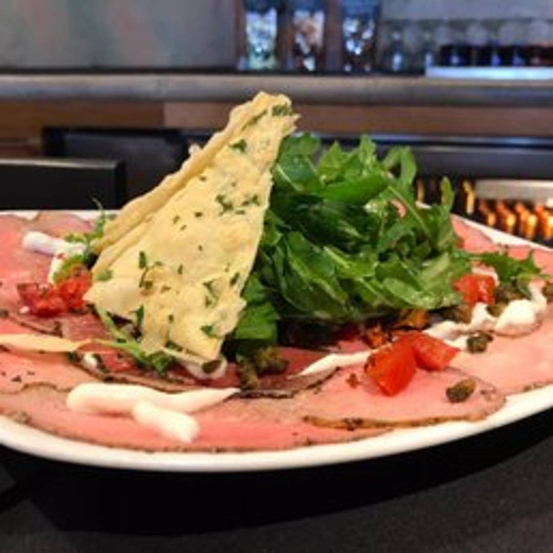 Thinly sliced raw beef tenderloin, drizzled with olive oil, capers, shaved Parmesan cheese, and arugula. Served with toasted crostini.