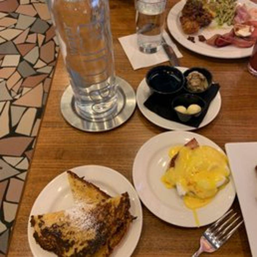 Thick slices of bread soaked in a rich egg custard and griddled to golden perfection. Served with powdered sugar, maple syrup, and fresh berries.