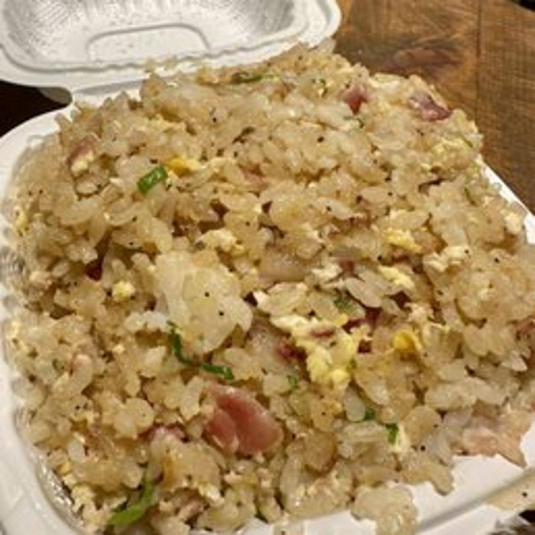Savory fried rice with crispy bacon, vegetables, and soy sauce. A flavorful and comforting dish.