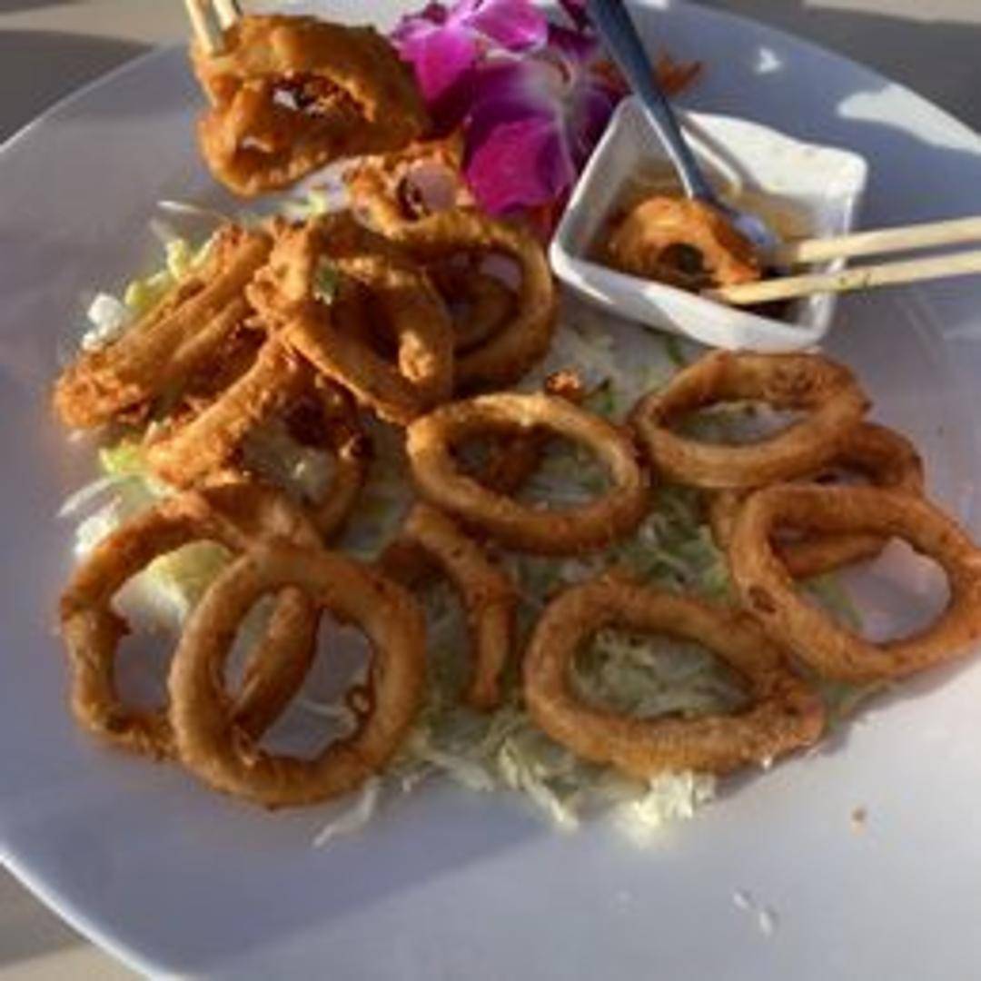 Lightly battered and fried calamari rings and tentacles, served with a sweet chili dipping sauce.