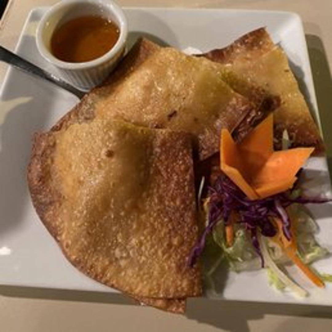 Crispy wonton dumplings filled with a creamy mixture of crab meat, cream cheese, and scallions. Served with a sweet dipping sauce.
