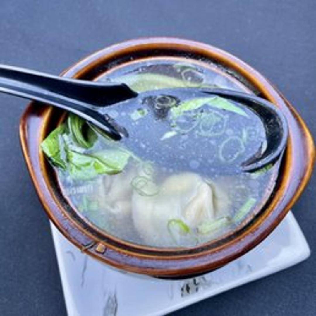 A classic and comforting soup featuring delicate wontons filled with seasoned ground pork and shrimp, simmered in a clear, flavorful broth. Garnished with scallions and often served with a drizzle of sesame oil.