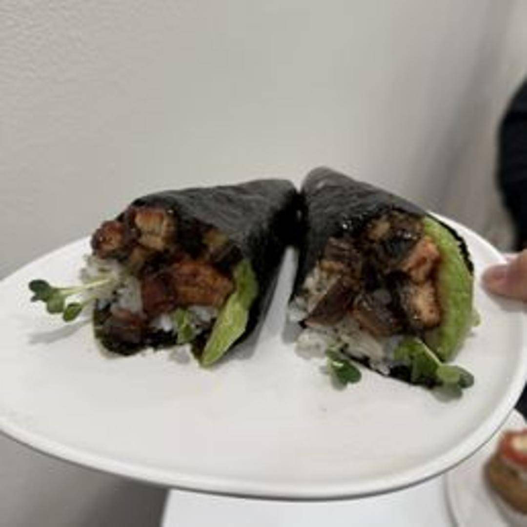 Freshly made handrolls featuring a variety of fillings wrapped in nori seaweed and seasoned sushi rice. These are a perfect quick bite with a burst of flavor in every bite. Fillings vary; check availability and offerings.