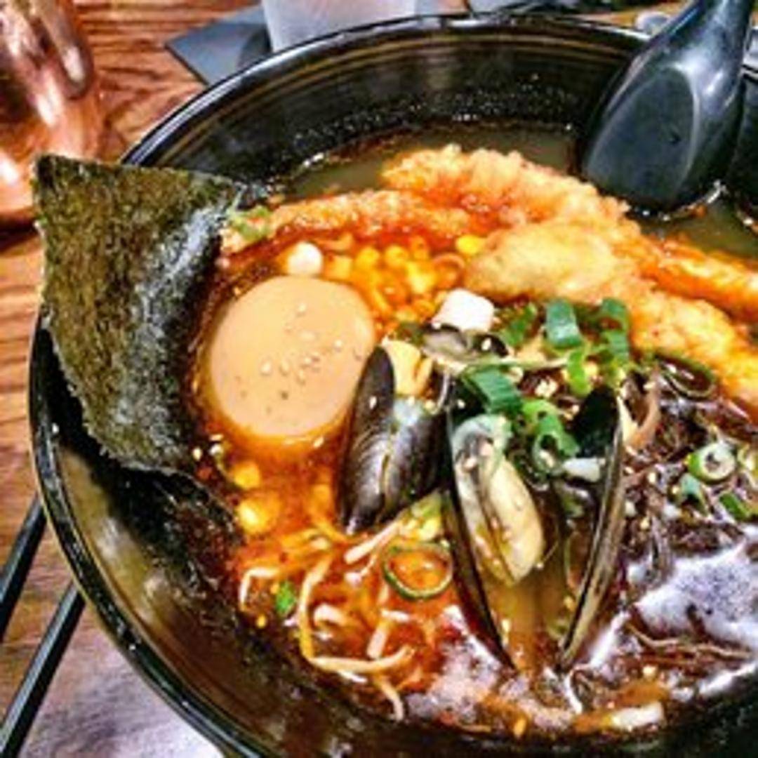 A hearty and flavorful ramen featuring a variety of fresh seafood, such as succulent shrimp, tender calamari, and delicate mussels, all served in a savory, dashi-based broth. Accompanied by springy ramen noodles and an assortment of vegetables, this dish offers a delightful taste of the ocean.