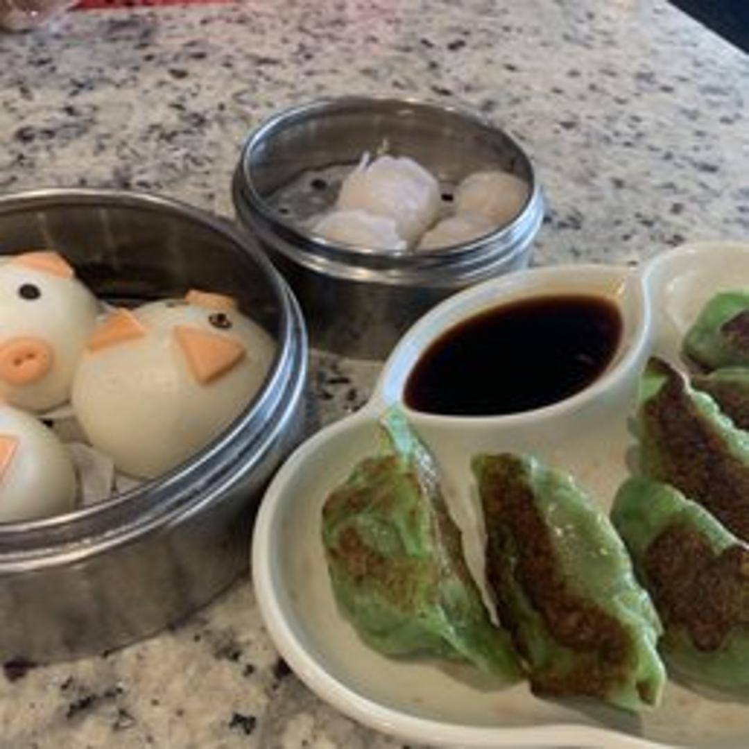 Savory dumplings filled with seasoned meat and vegetables, pan-fried to a golden brown and crispy on one side.