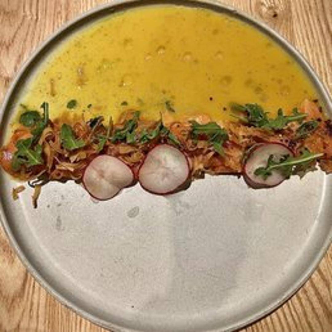 Delicate slices of fresh, premium fish, artfully arranged and bathed in a vibrant, zesty 'leche de tigre' infused with the exotic sweetness of passion fruit and the bright tang of key lime. This refreshing tiradito offers a harmonious balance of citrus, subtle spice, and tropical notes, characteristic of Nikkei cuisine.