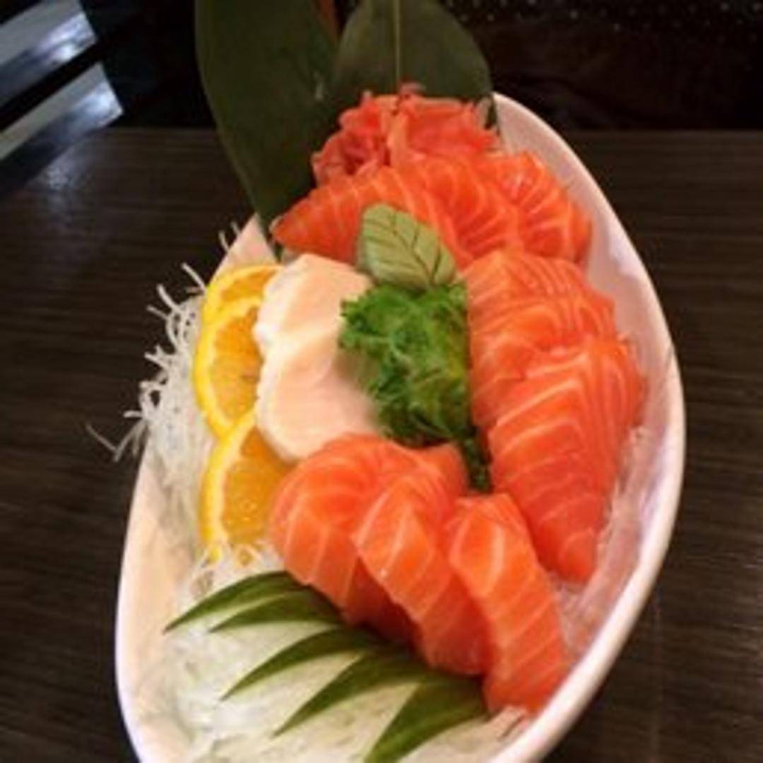 Exquisite cuts of fresh, high-quality salmon, thinly sliced to perfection, showcasing its vibrant orange hue and rich marbling. Known for its melt-in-your-mouth texture and buttery flavor, served traditionally as pure, raw fish.