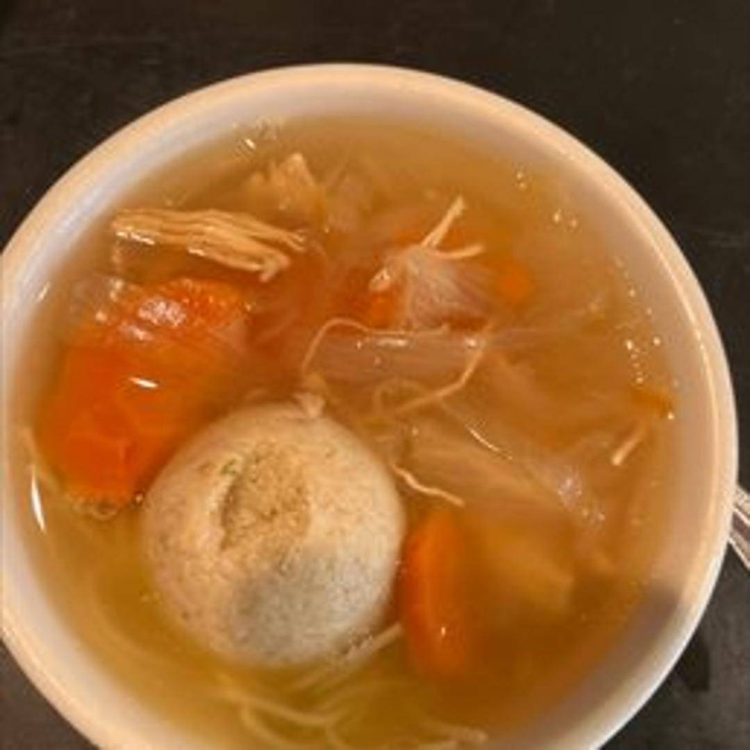 Traditional chicken soup, served chilled. Prepared with chicken, vegetables and broth.
