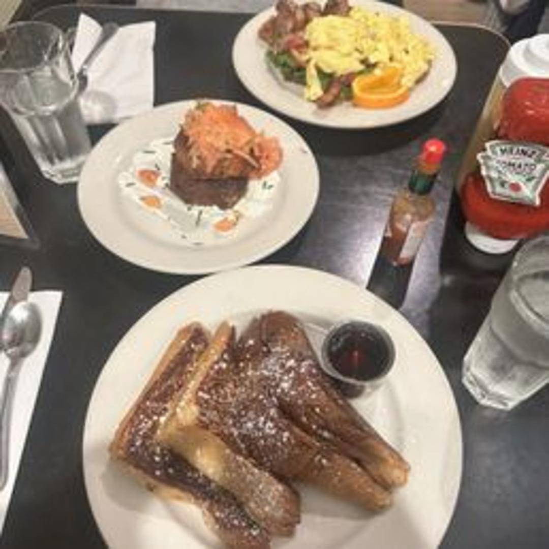 Thick slices of challah bread dipped in a rich custard batter and griddled to golden perfection, served with maple syrup and a dusting of powdered sugar. A sweet and comforting breakfast treat.