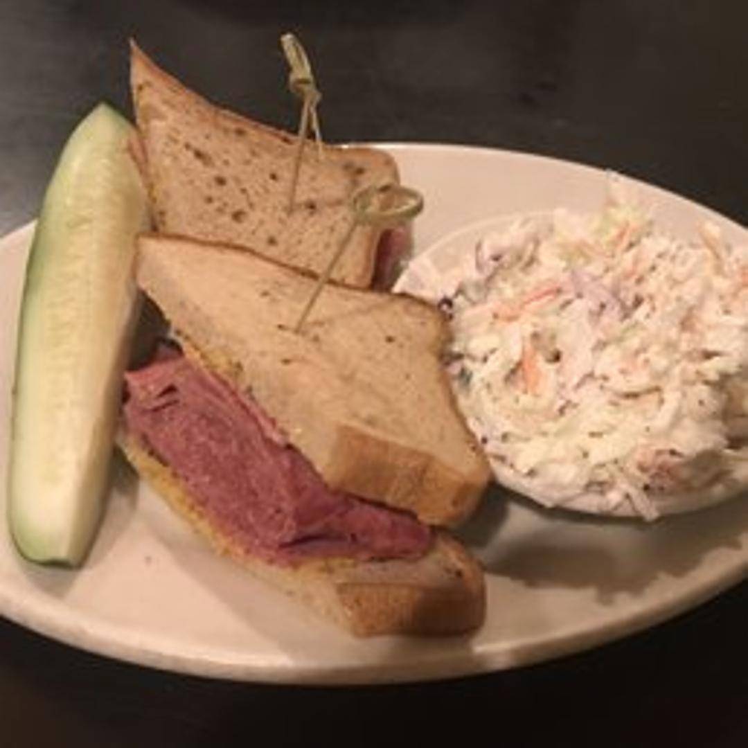 Piled high with thinly sliced, hand-carved pastrami. Served on rye bread with mustard and a side of your choice.