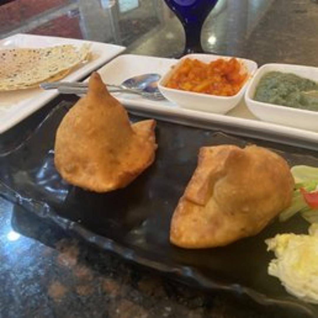 Crispy, golden-brown pastries filled with a savory mixture of spiced potatoes, peas, and aromatic herbs. Served with a tangy tamarind chutney and refreshing mint-cilantro chutney.