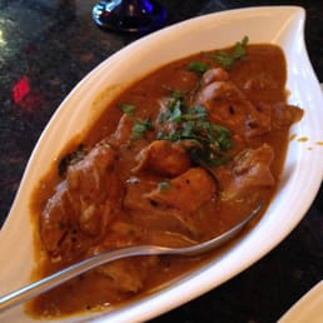 A classic South Indian curry with tender pieces of chicken cooked in a fiery blend of spices including red chilies, curry leaves, and mustard seeds. A medium-hot dish with a tangy tomato-based sauce.