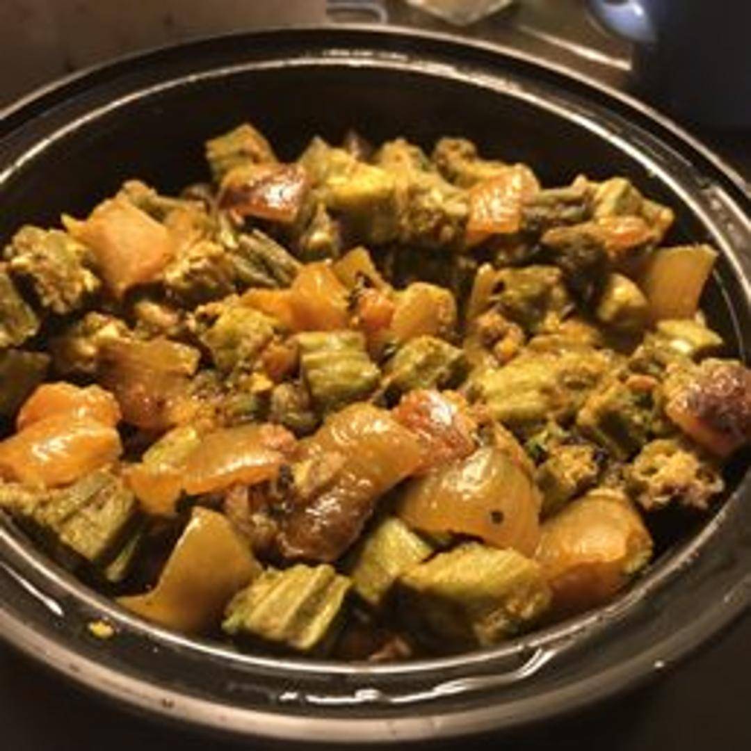 A dry and flavorful North Indian dish made with okra (bhindi) cooked with onions, tomatoes, and a blend of aromatic spices. A vegan and gluten-free option, often served as a side dish.
