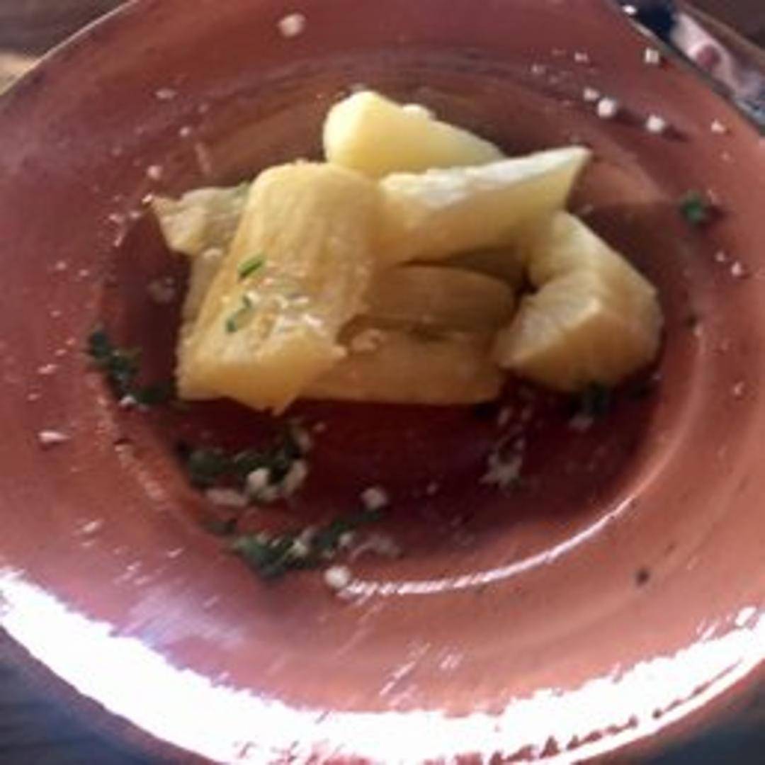 Hearty and delicious yuca root, also known as cassava, prepared to perfection. Often served as crispy golden fries with a fluffy interior, or boiled and lightly fried for a softer texture. This versatile root vegetable offers a subtly sweet and earthy flavor, perfect as a side dish or appetizer, often accompanied by a creamy dipping sauce.