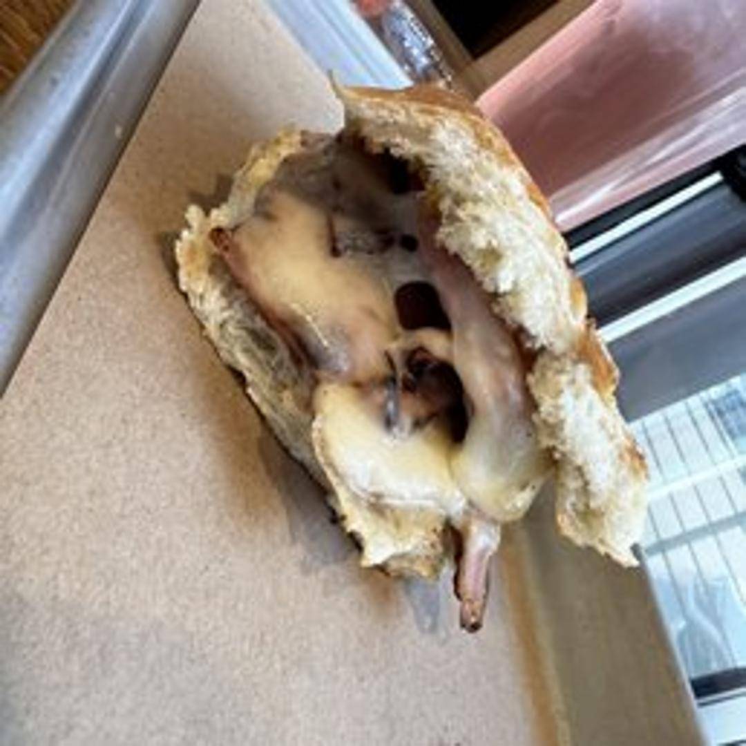 Roasted pork, ham, Swiss cheese, pickles, and mustard, pressed on Cuban bread.