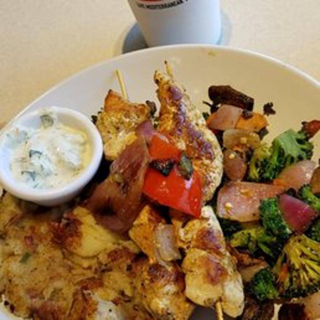 Two grilled chicken kabobs marinated with fresh herbs and spices. Served with your choice of two sides and pita bread.