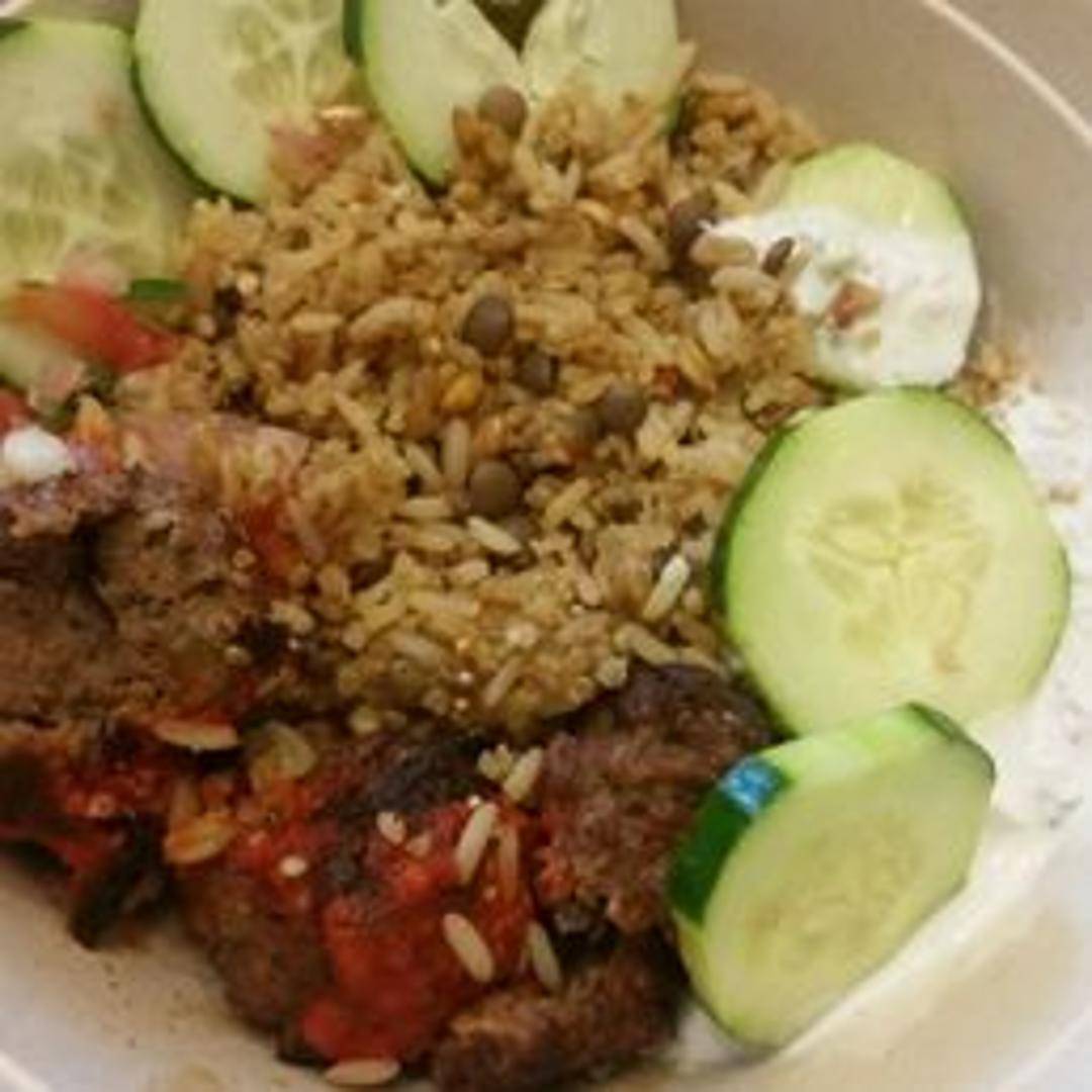 Grilled skewers of seasoned ground lamb, served with your choice of two sides and tzatziki sauce.