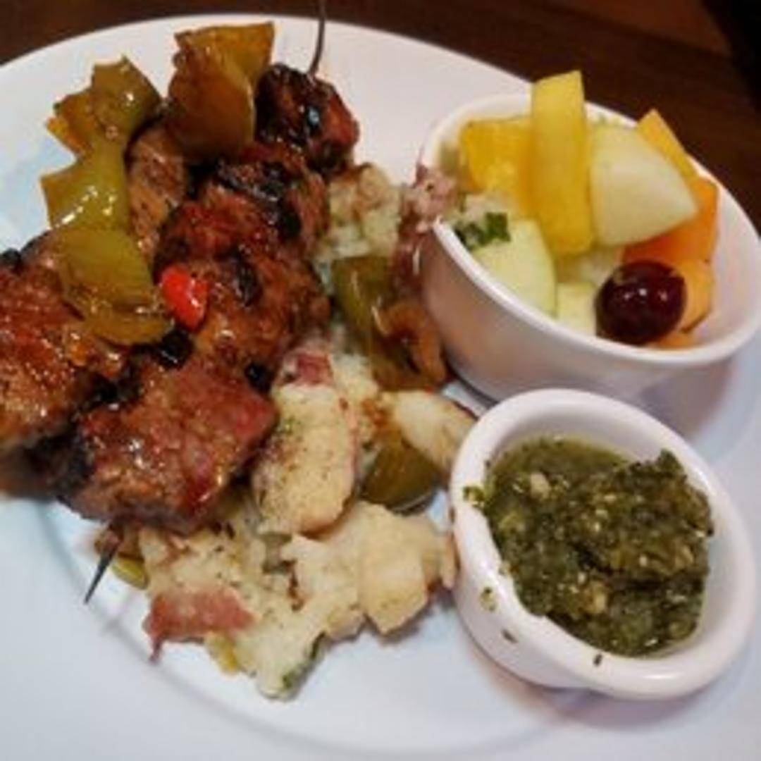 Grilled steak kabobs marinated with Zoe's signature flavors, served over a bed of rice pilaf with a side of tzatziki sauce.