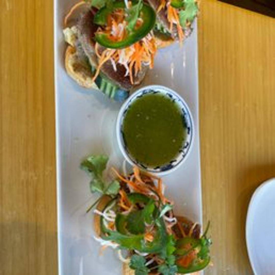 A traditional Vietnamese sandwich built on a crispy baguette. Filled with your choice of protein (typically grilled pork, chicken, or tofu), pickled daikon and carrots, fresh cilantro, sliced cucumbers, jalapeños, and a spread of mayonnaise or aioli. Offers a balance of savory, sweet, and spicy flavors with contrasting textures.