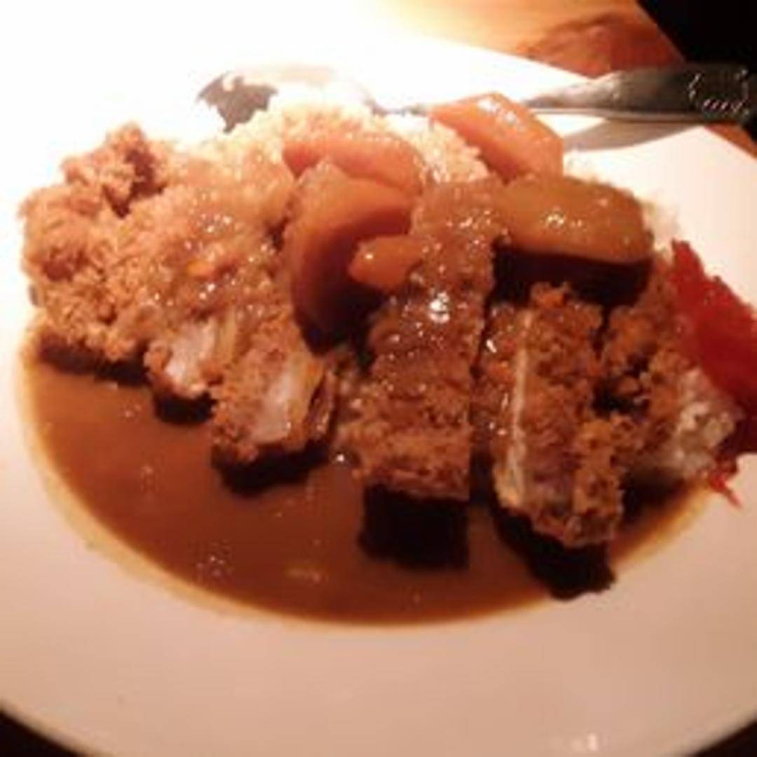 A comforting and savory bowl featuring thick, chewy udon noodles submerged in a rich, deeply flavored Japanese curry broth. Crowned with a perfectly crispy, golden-fried katsu cutlet (typically pork or chicken), offering a satisfying crunch and savory counterpoint to the aromatic curry.