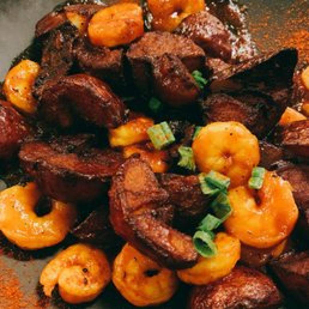A generous portion of crispy, golden-fried shrimp tossed in a tangy and slightly spicy Creole sauce. Served over a bed of creamy coleslaw with a side of crispy french fries.